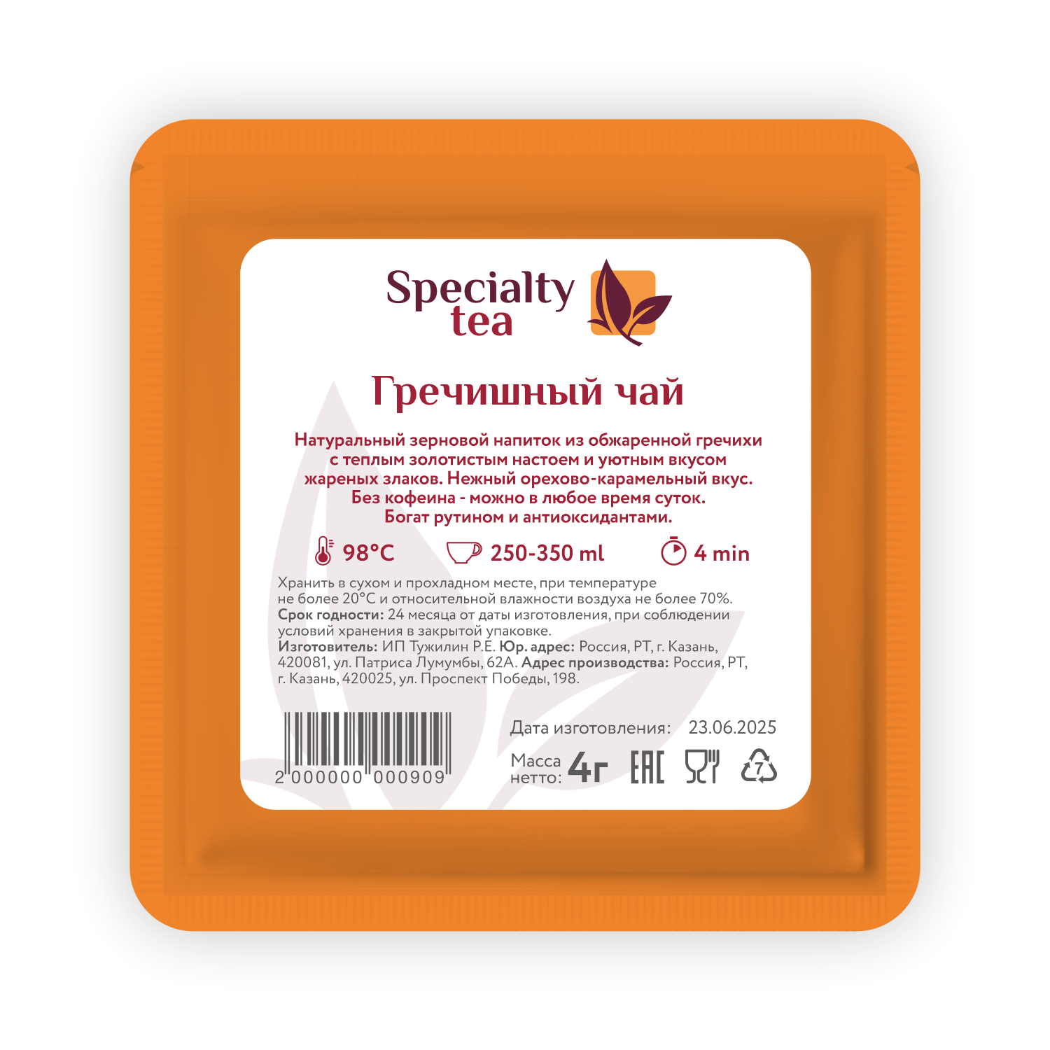 Гречишный чай – напиток здоровья и бодрости! Активизирует обмен веществ, укрепляет иммунитет, улучшает пищеварение и заряжает энергией всего одного чашки! Природный антиоксидант очищает организм от токсинов и способствует нормализации давления. Удобная упаковка позволяет брать его с собой куда угодно – наслаждайтесь пользой и вкусом всегда и везде!